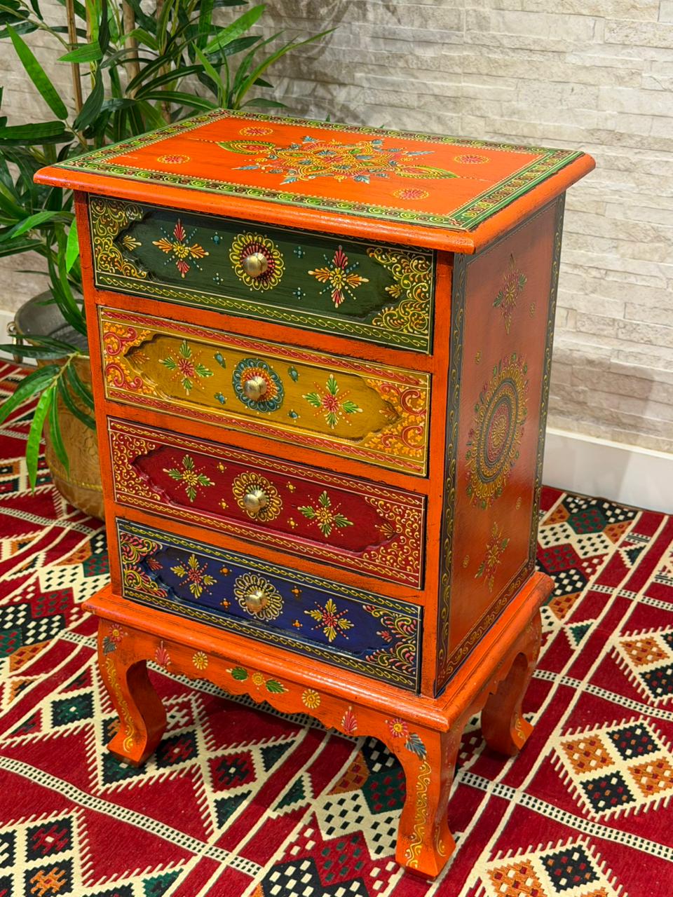 Gaveteiro em Madeira - Pintado à mão - 4 Gavetas - Laranja e Colorido