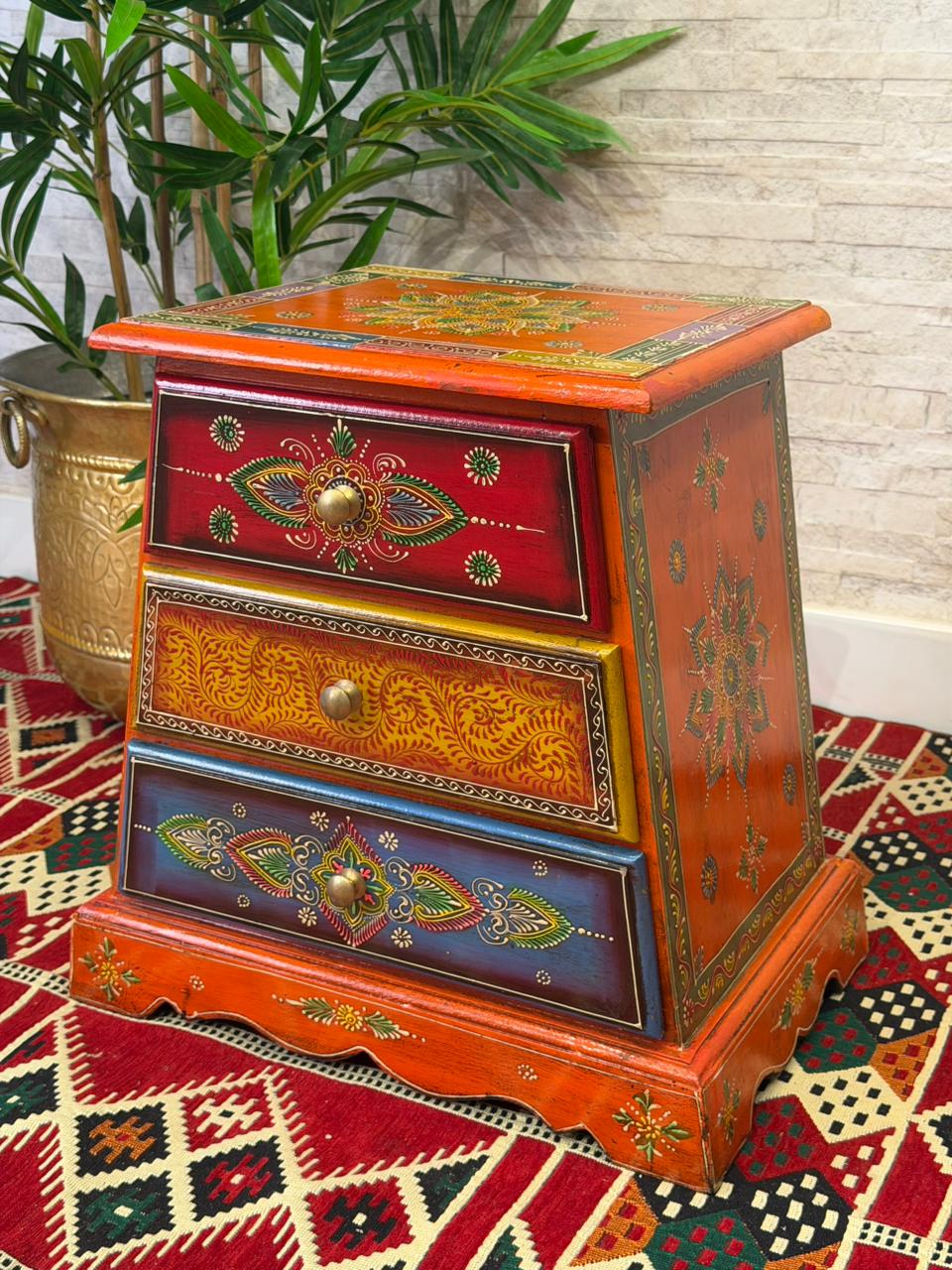 Gaveteiro - Madeira - Pintado à mão - 3 Gavetas - Laranja e Colorido