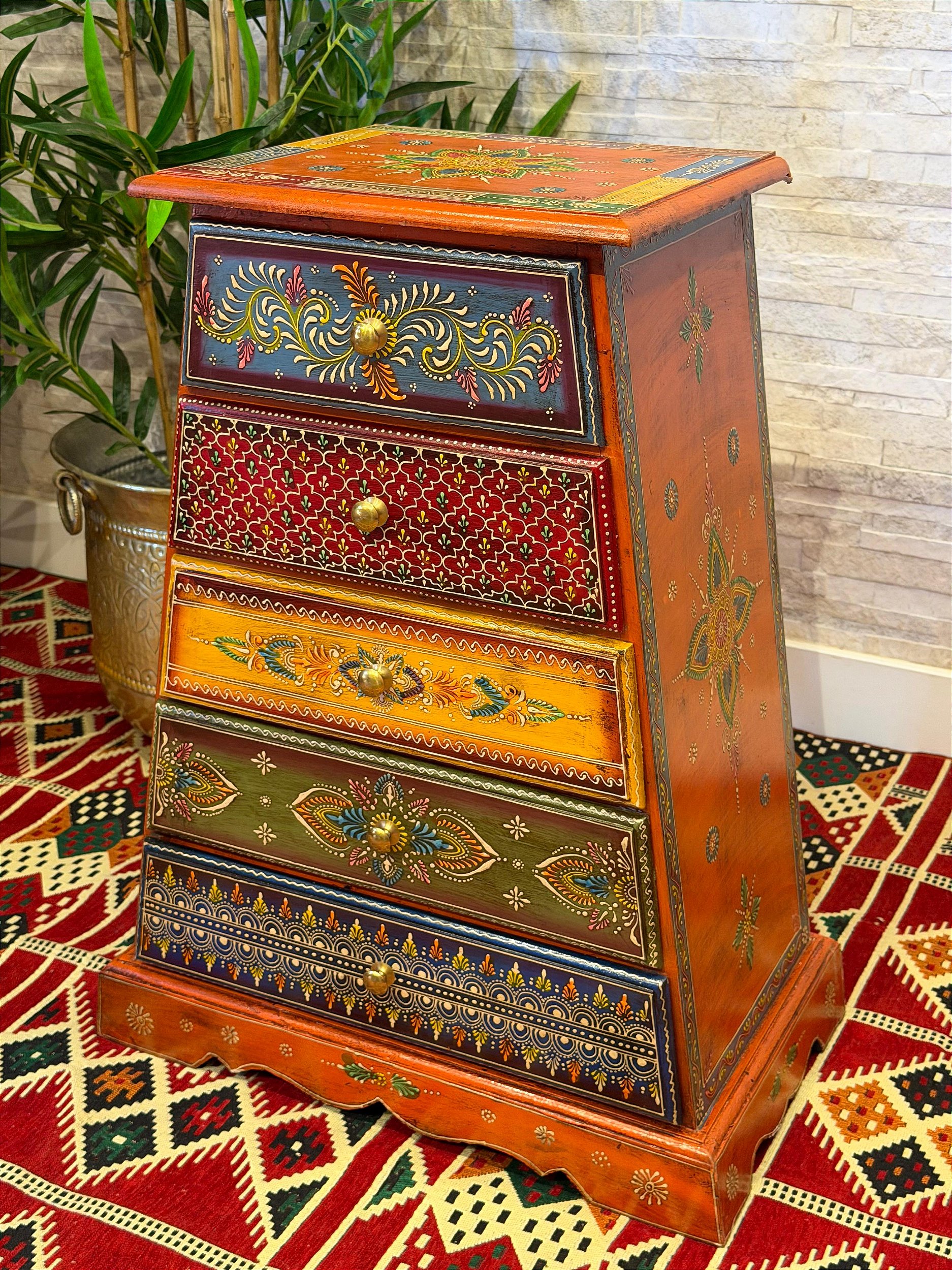 Encanto para quem ama decoração com alma. Este gaveteiro Indiano é inteiramente trabalhado em madeira e recebe delicados desenhos pintados à mão, trazendo o charme e a autenticidade do artesanato.