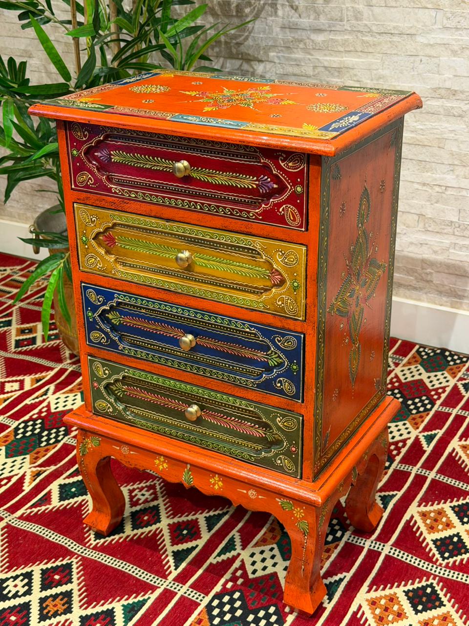 Gaveteiro em Madeira - Pintado à mão - 4 Gavetas - Laranja e Colorido