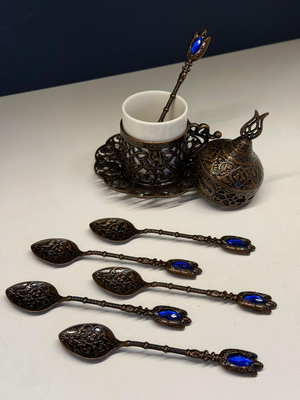 Jogo de Colheres - Turcas - Metal - Cobre e Azul