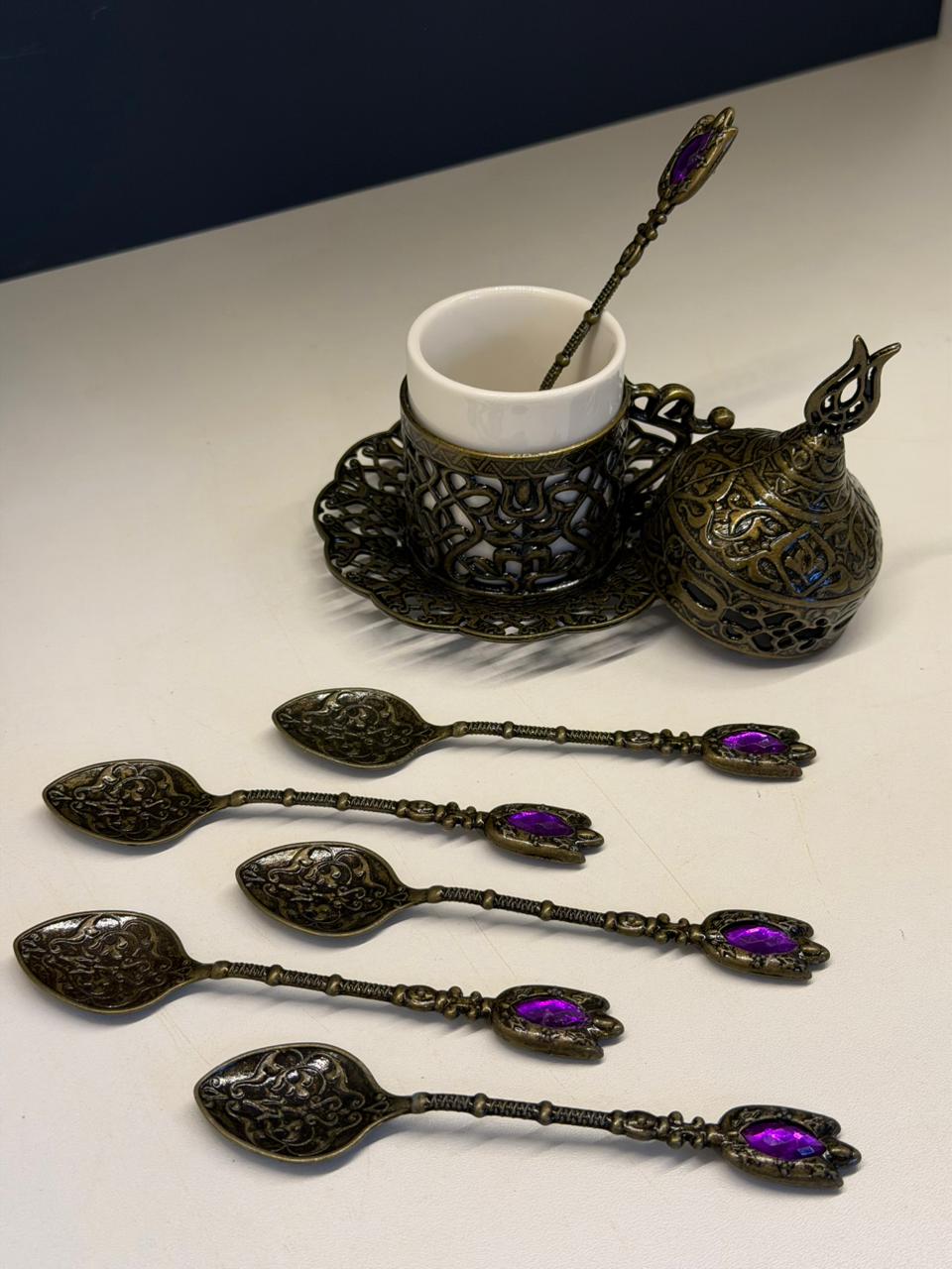 Jogo de Colheres - Turcas - Metal - Dourado Envelhecido e Roxo