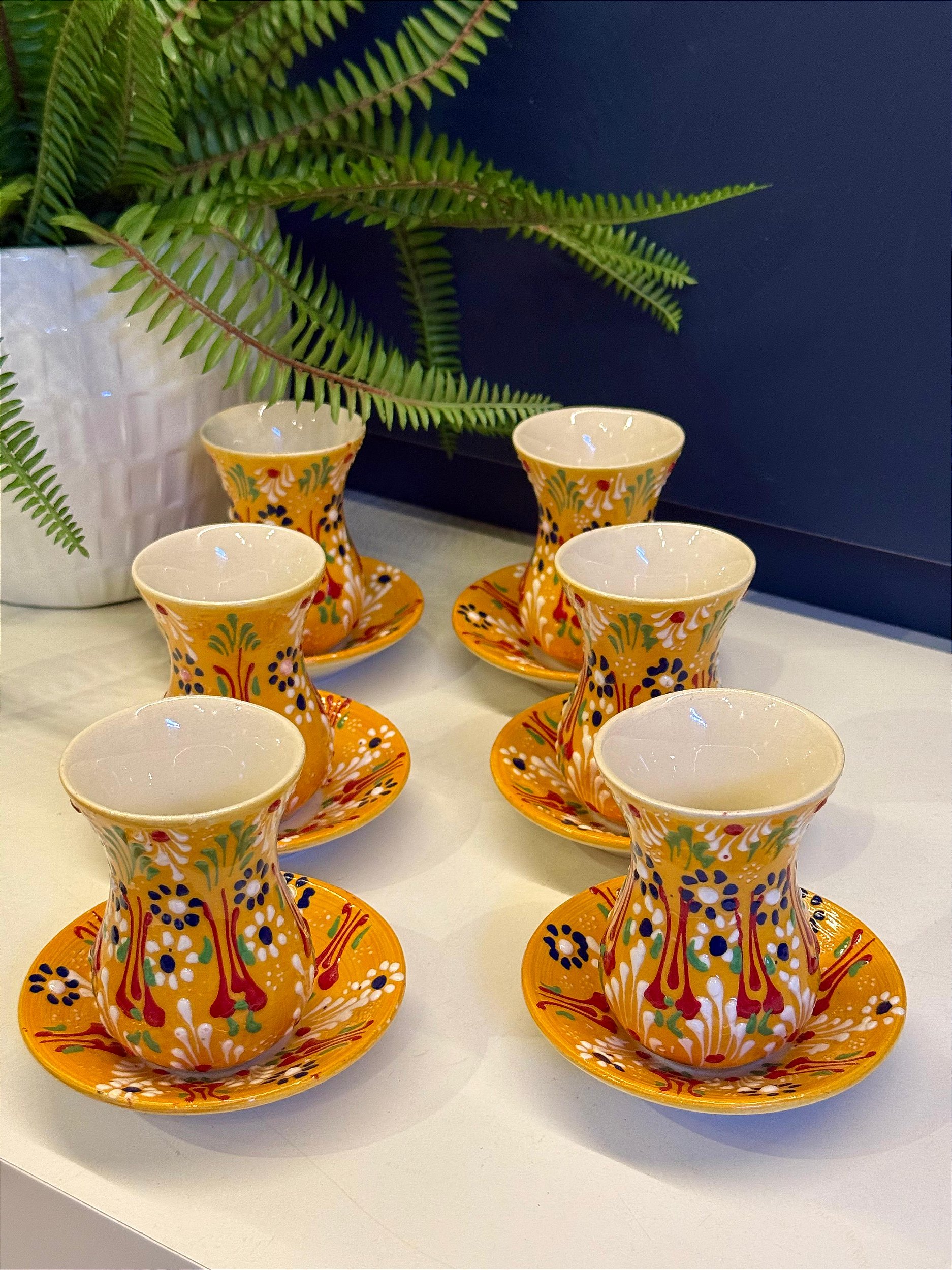 Jogo de Copos Turco - Cerâmica - Pintado à mão - Amarelo