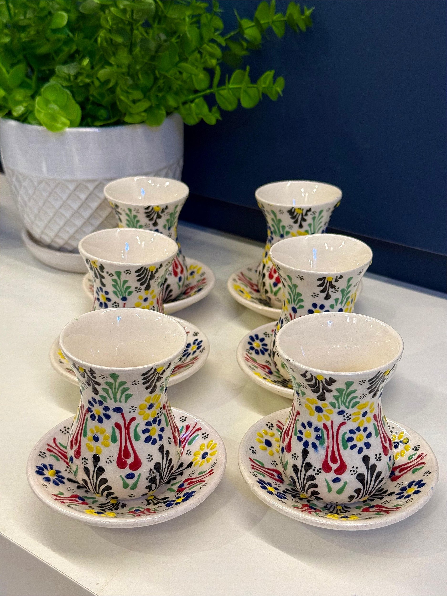 Jogo de Copos Turco - Cerâmica - Pintado à mão - Branco