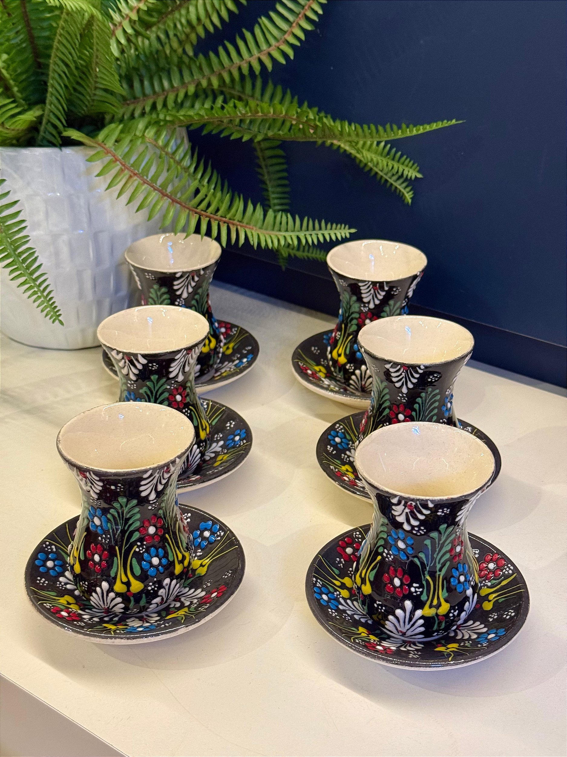 Jogo de Copos Turco - Cerâmica - Pintado à mão - Preto