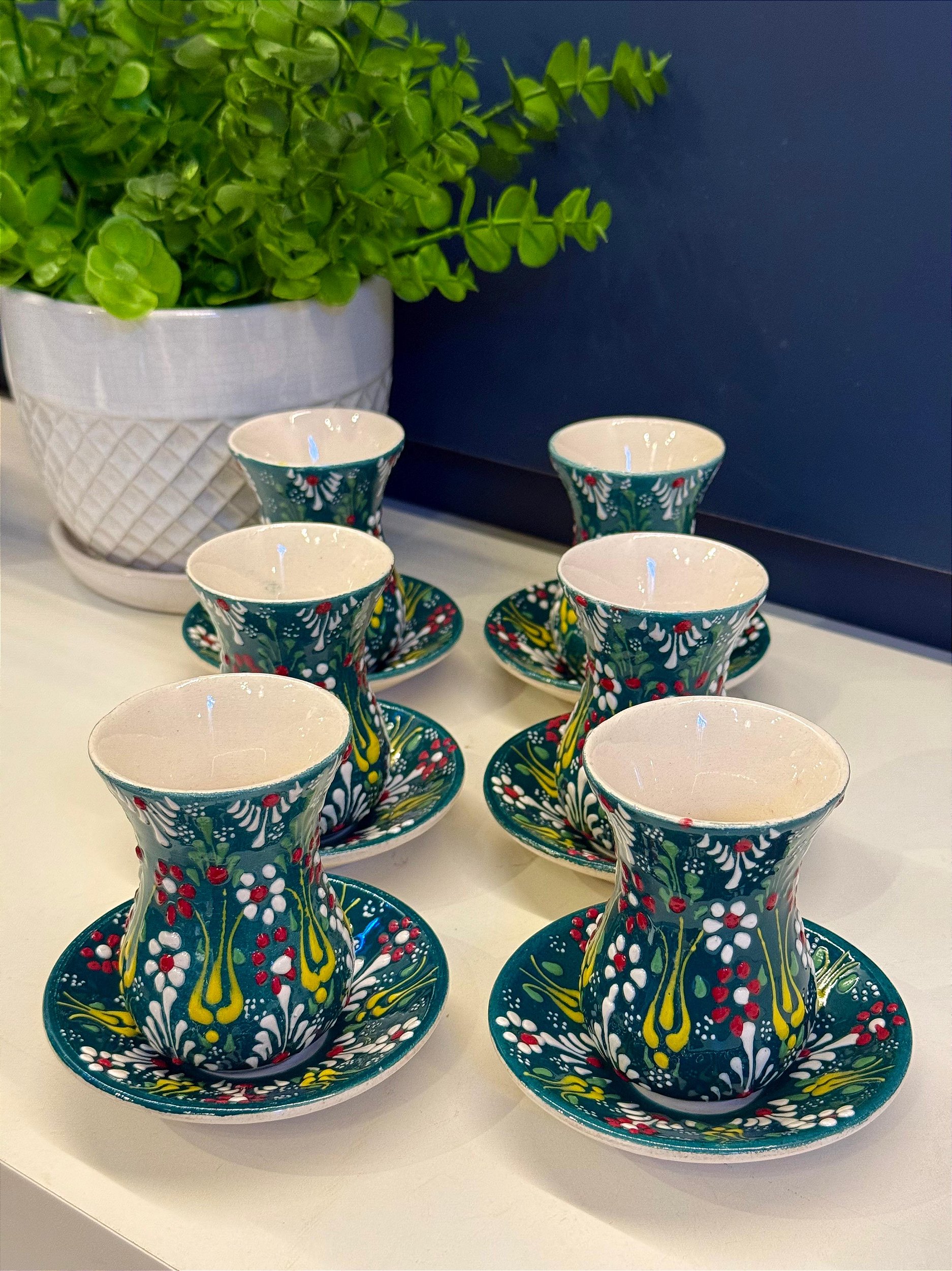 Jogo de Copos Turco - Cerâmica - Pintado à mão - Verde