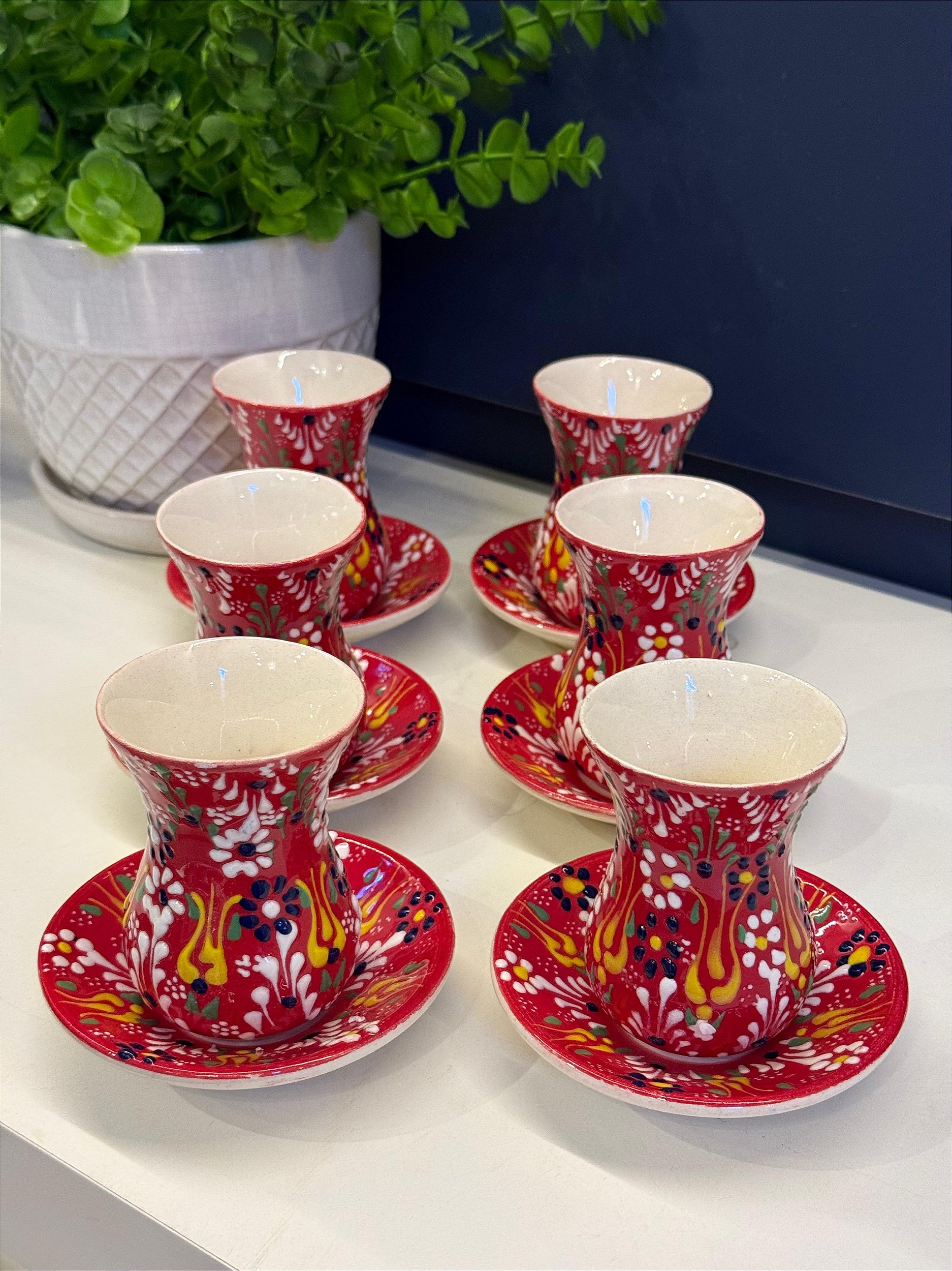 Jogo de Copos Turco - Cerâmica - Pintado à mão - Vermelho