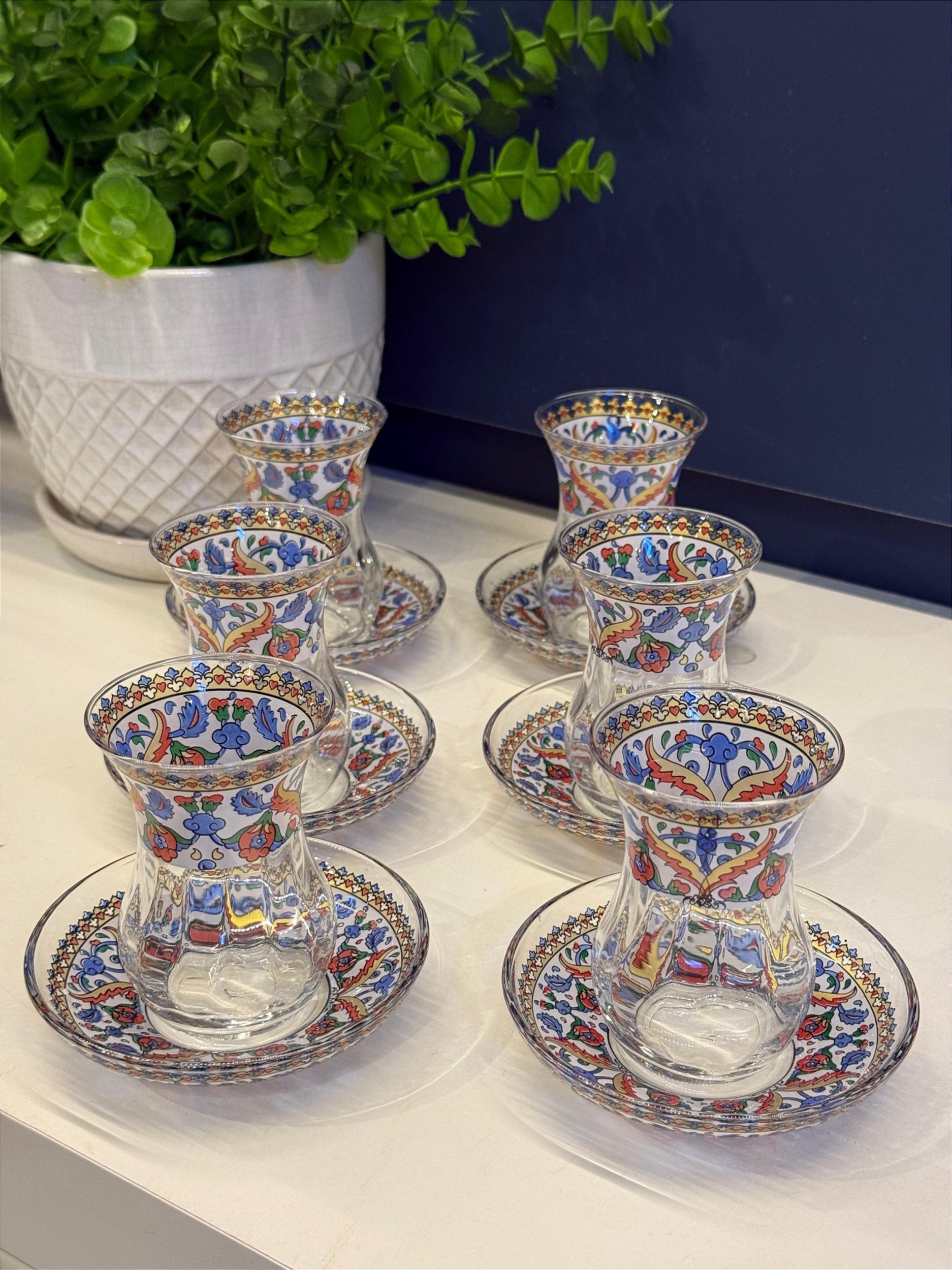 Jogo de Copos Turco - Vidro Turquia - Colorido