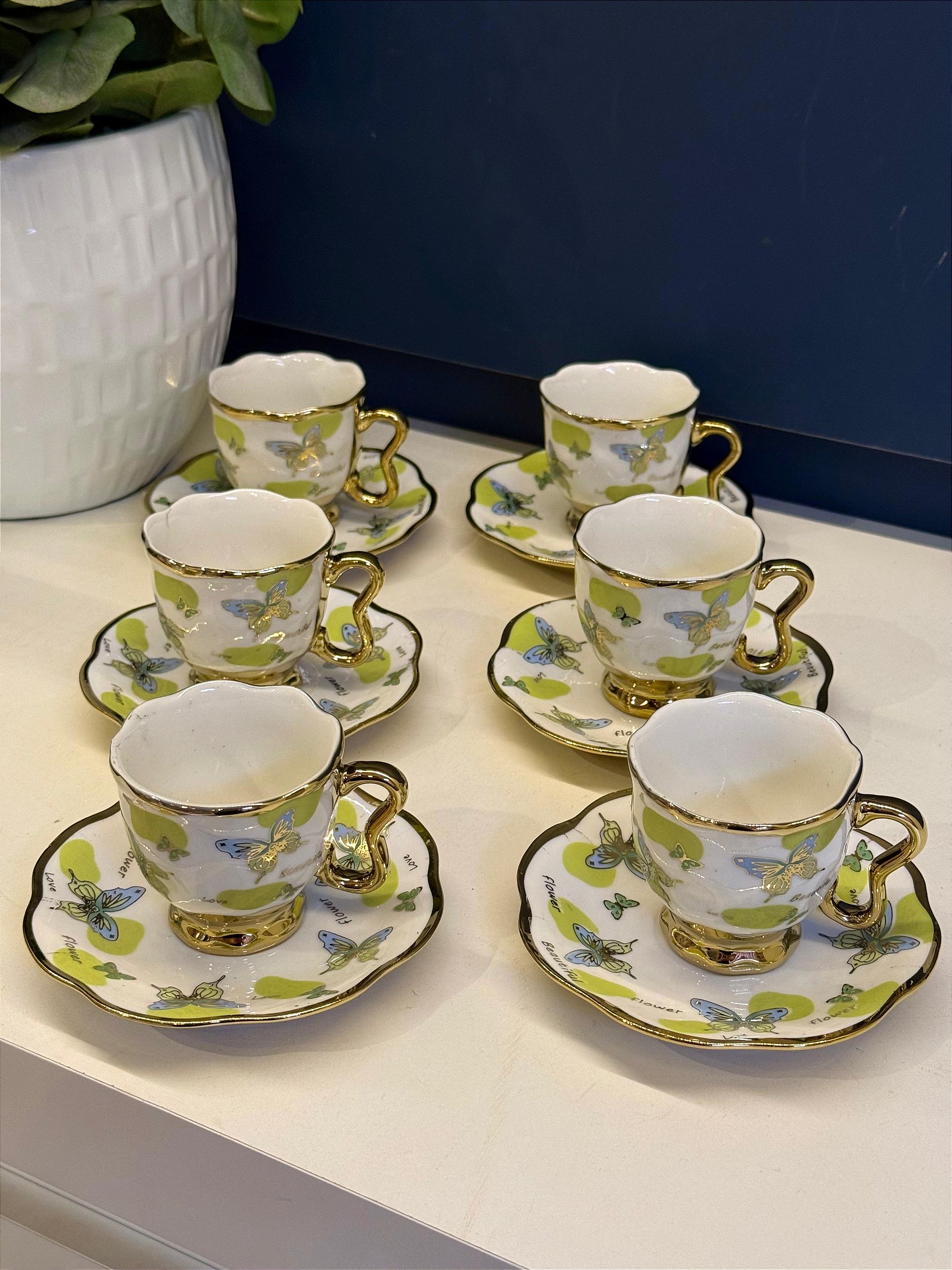 O Jogo acompanham 6 Xícaras + 6 Píres