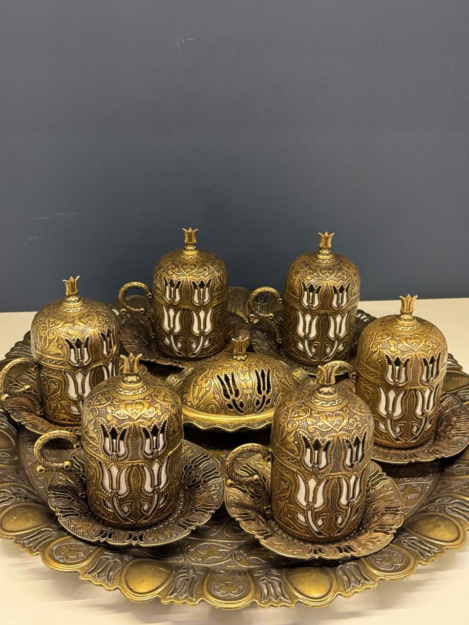Jogo de Xícaras Turca com Bandeja - Ceramica e Metal