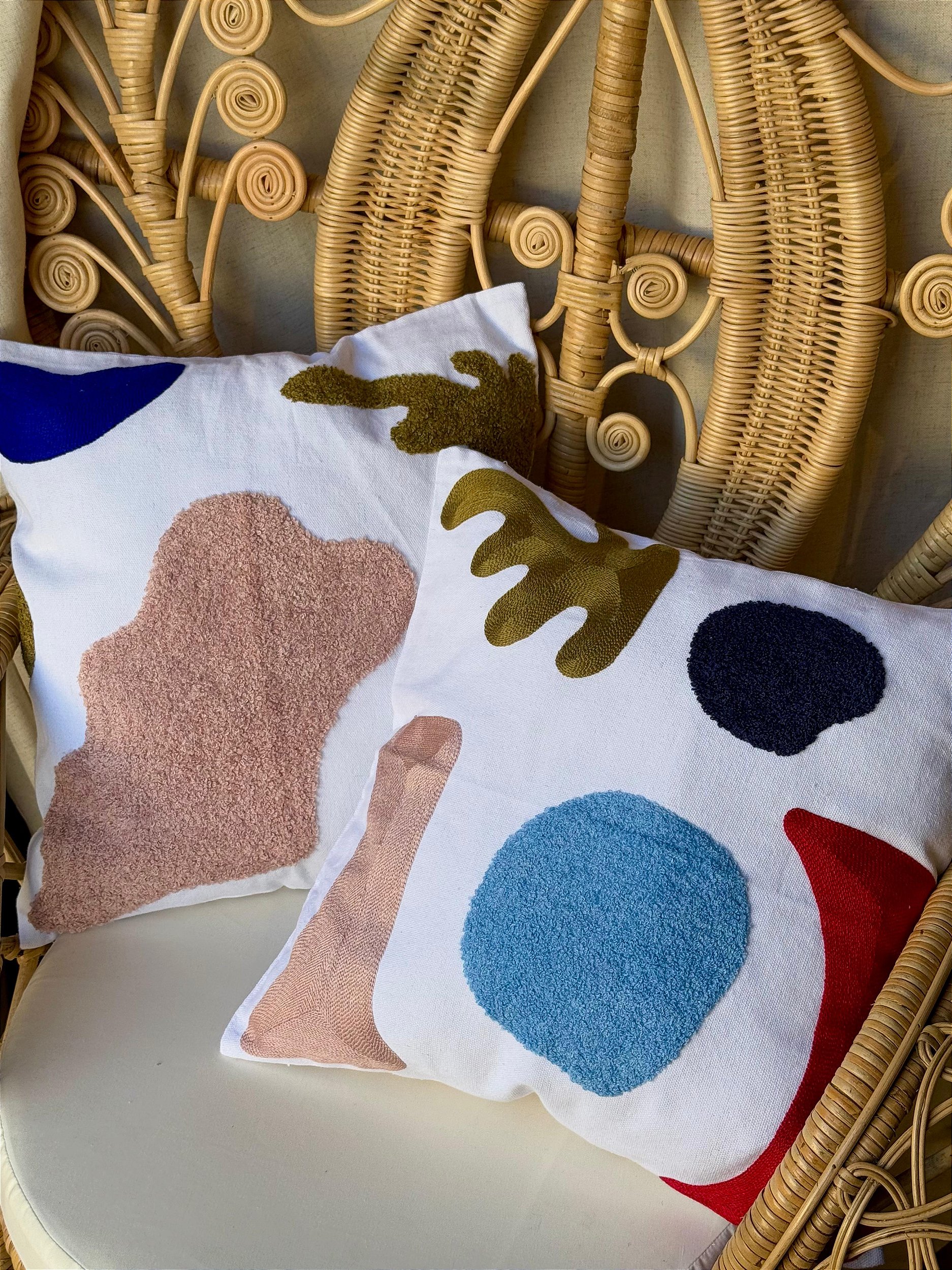 As capas de almofada são uma verdadeira peça artesanal feitas na Índia, rica em detalhes com o trabalho minusioso com bordado em brim e linhas de algodão, tornando cada peça única, com personalidade e sofisticação.
