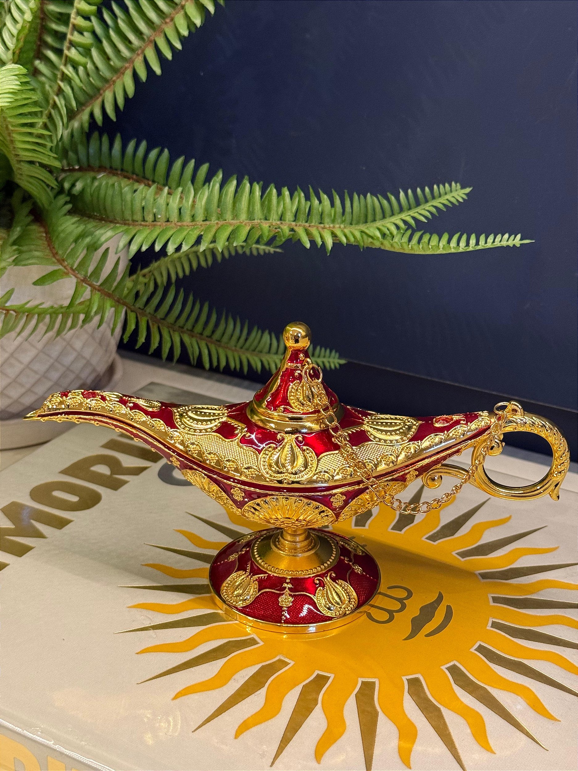Lâmpada Mágica - Metal - Vermelha e Dourada - 21CM