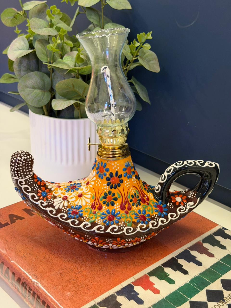Encante sua decoração com esta peça única inspirada nas tradicionais lâmpadas mágicas orientais. Produzida na Turquia e cuidadosamente pintada à mão, apresenta riqueza de detalhes em alto relevo e cores vibrantes que valorizam o trabalho artesanal. Com design marcante e formato icônico, é uma peça exclusivamente decorativa. Ideal para compor ambientes com estilo boho e trazer um toque exótico, sofisticado e cheio de personalidade.