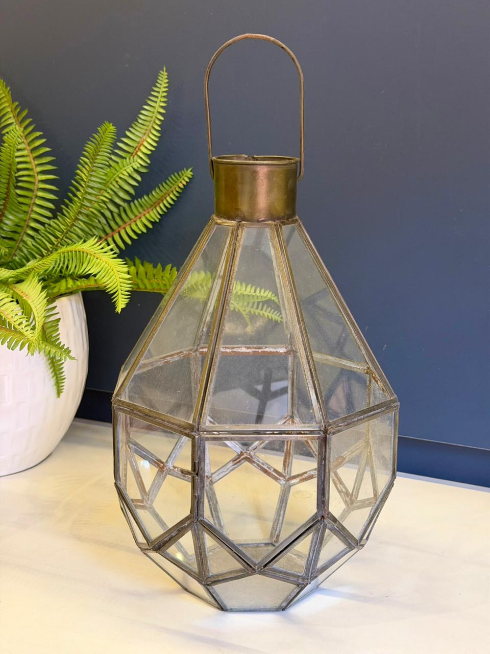 Lanterna Marroquina - Ouro Velho - Metal e Vidro