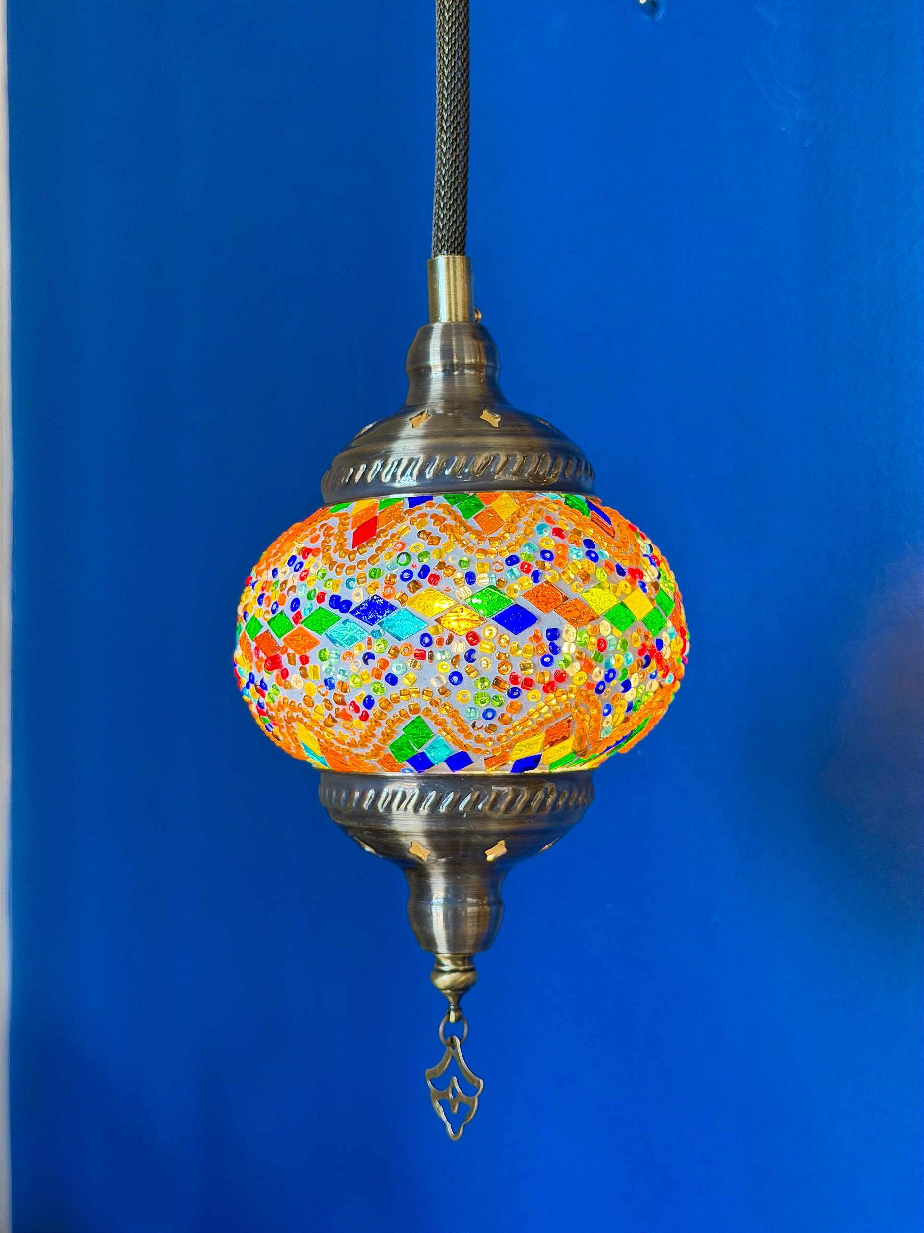 As luminárias turcas são uma peça artesanal feita manualmente, que carrega tradição na arte do mosaico em vidro. Cada detalhe é cuidadosamente trabalhado à mão, formando um desenho vibrante e harmônico, com pequenas pastilhas coloridas que criam um efeito luminoso único e acolhedor.