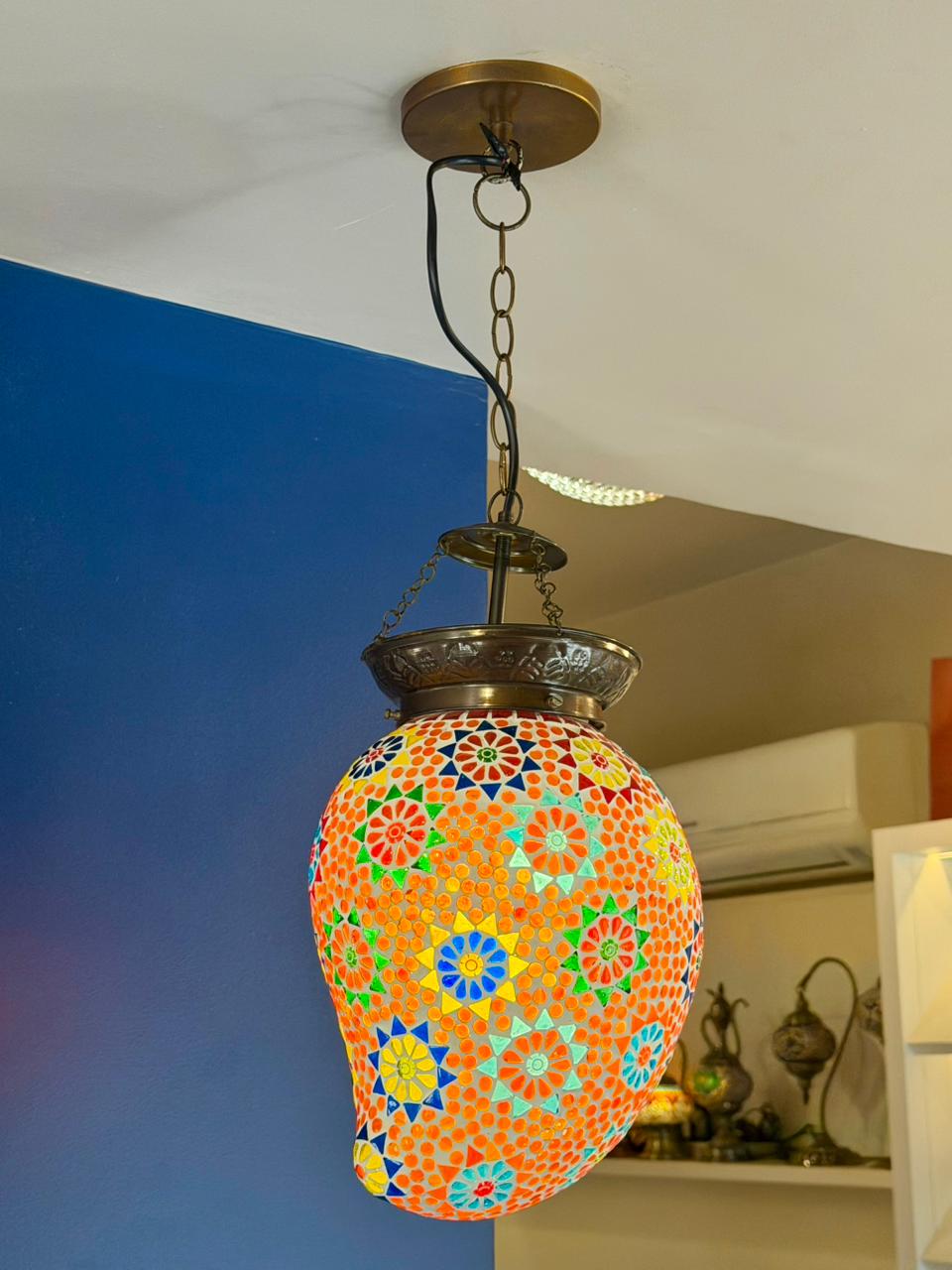 Luminária de Teto Metal e Vidro Laranja e Colorido