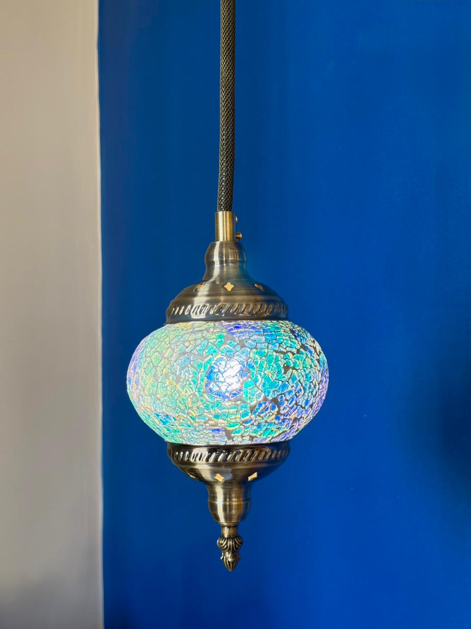 As luminárias turcas são uma peça artesanal feita manualmente, que carrega tradição na arte do mosaico em vidro. Cada detalhe é cuidadosamente trabalhado à mão, formando um desenho vibrante e harmônico, com pequenas pastilhas coloridas que criam um efeito luminoso único e acolhedor.
