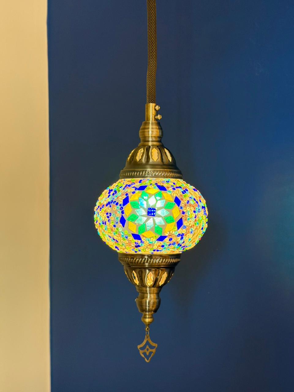 As luminárias turcas são uma peça artesanal feita manualmente, que carrega tradição na arte do mosaico em vidro. Cada detalhe é cuidadosamente trabalhado à mão, formando um desenho vibrante e harmônico, com pequenas pastilhas coloridas que criam um efeito luminoso único e acolhedor.