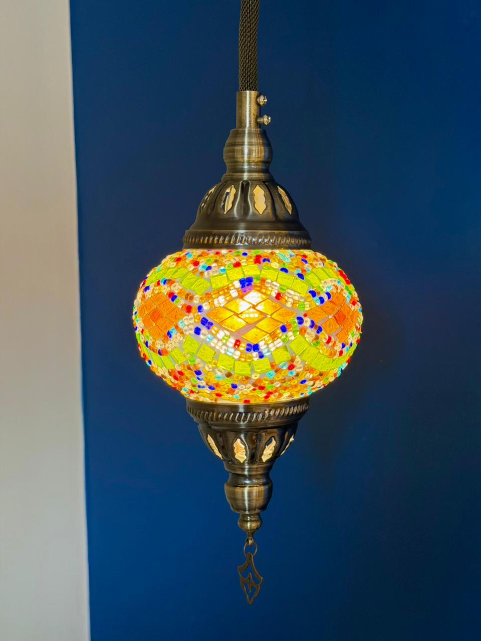 As luminárias turcas são uma peça artesanal feita manualmente, que carrega tradição na arte do mosaico em vidro. Cada detalhe é cuidadosamente trabalhado à mão, formando um desenho vibrante e harmônico, com pequenas pastilhas coloridas que criam um efeito luminoso único e acolhedor.
