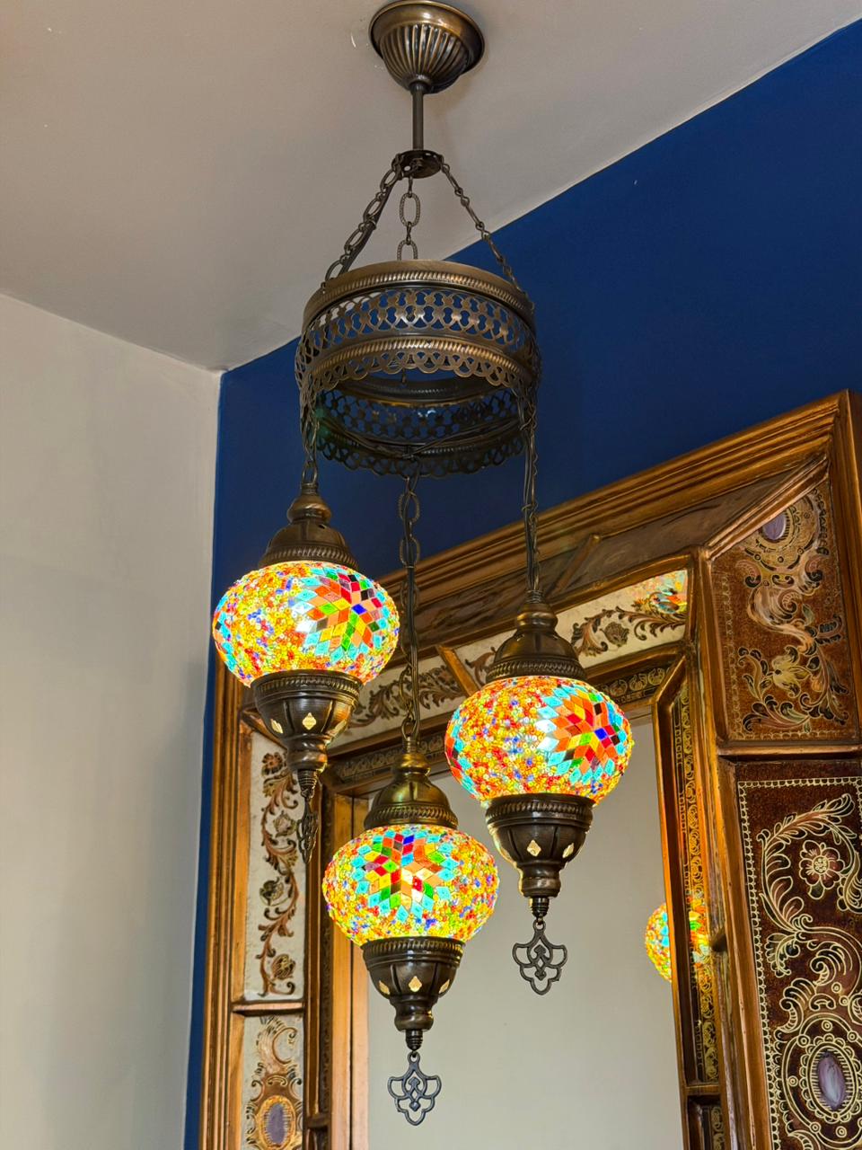 As luminárias turcas são uma peça artesanal feita manualmente, que carrega tradição na arte do mosaico em vidro. Cada detalhe é cuidadosamente trabalhado à mão, formando um desenho vibrante e harmônico, com pequenas pastilhas coloridas que criam um efeito luminoso único e acolhedor.