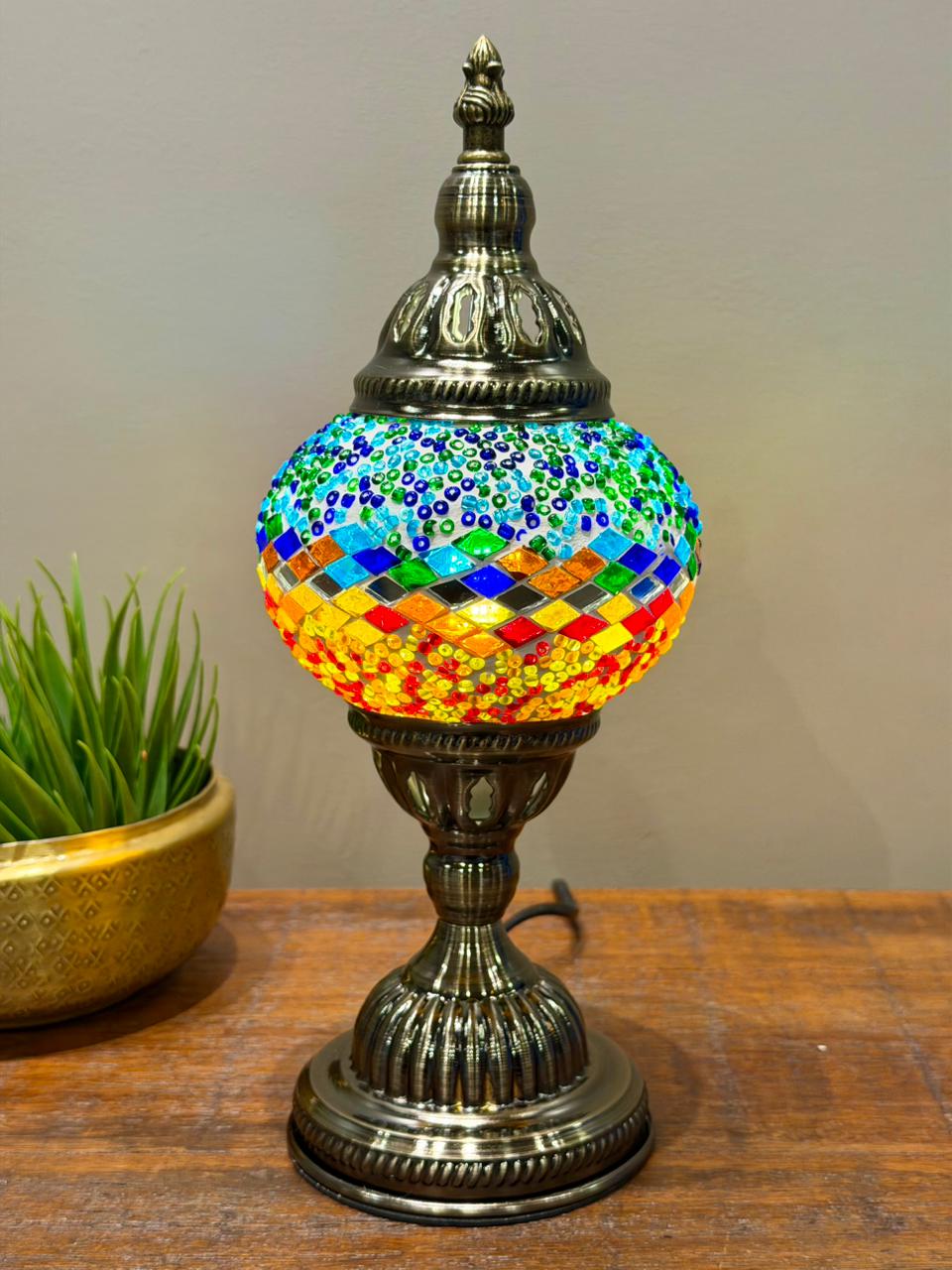 As luminárias turcas são uma peça artesanal feita manualmente, que carrega tradição na arte do mosaico em vidro. Cada detalhe é cuidadosamente trabalhado à mão, formando um desenho vibrante e harmônico, com pequenas pastilhas coloridas que criam um efeito luminoso único e acolhedor.
