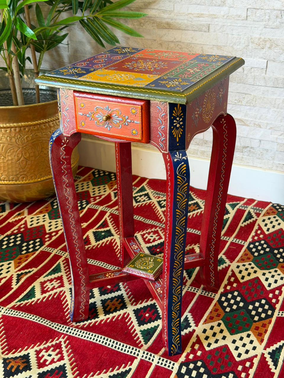 Encanto para quem ama decoração com alma. Este gaveteiro Indiano é inteiramente trabalhado em madeira e recebe delicados desenhos pintados à mão, trazendo o charme e a autenticidade do artesanato.
