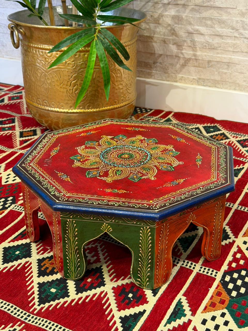 Mesa Madeira - Pintado à Mão - Vermelho e Colorido - 41CM