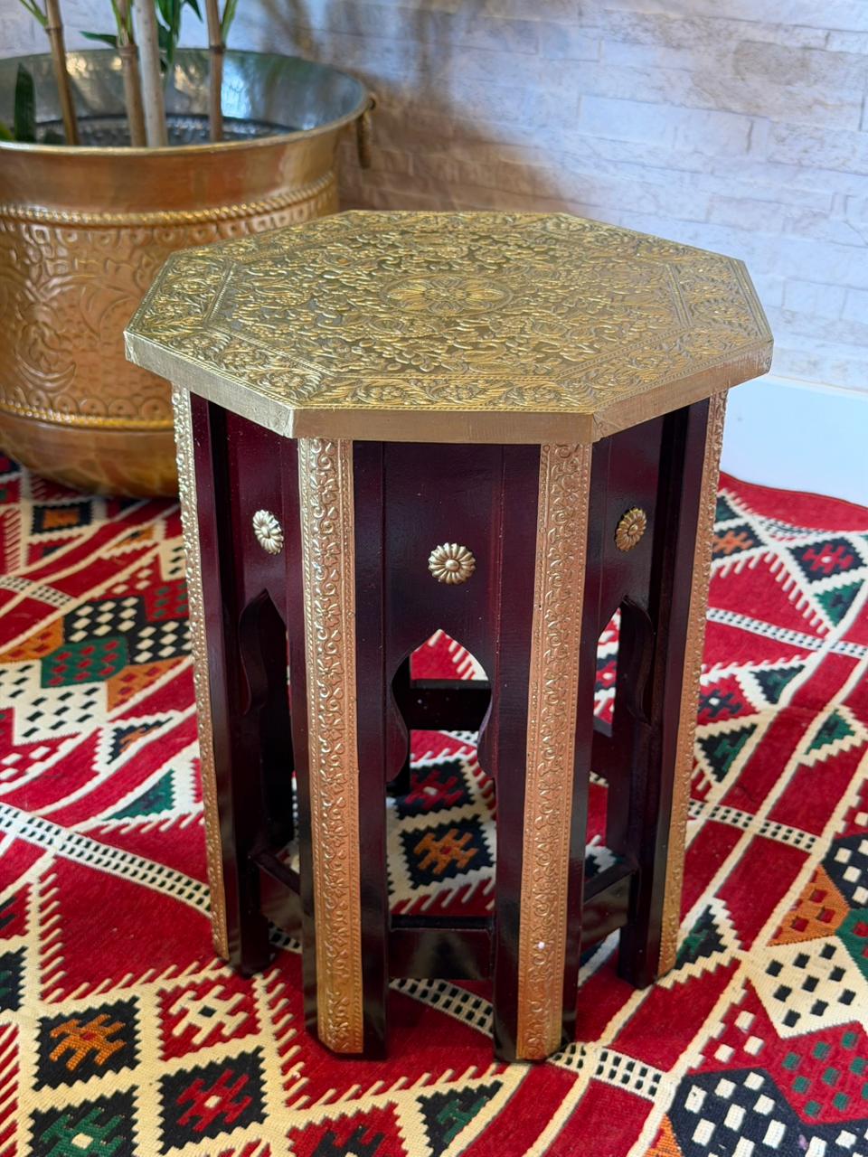 Encanto para quem ama decoração com alma. Mesa Indiana é inteiramente trabalhado em madeira e recebe delicados desenhos pintados à mão e aplique em metal, trazendo o charme e a autenticidade do artesanato.