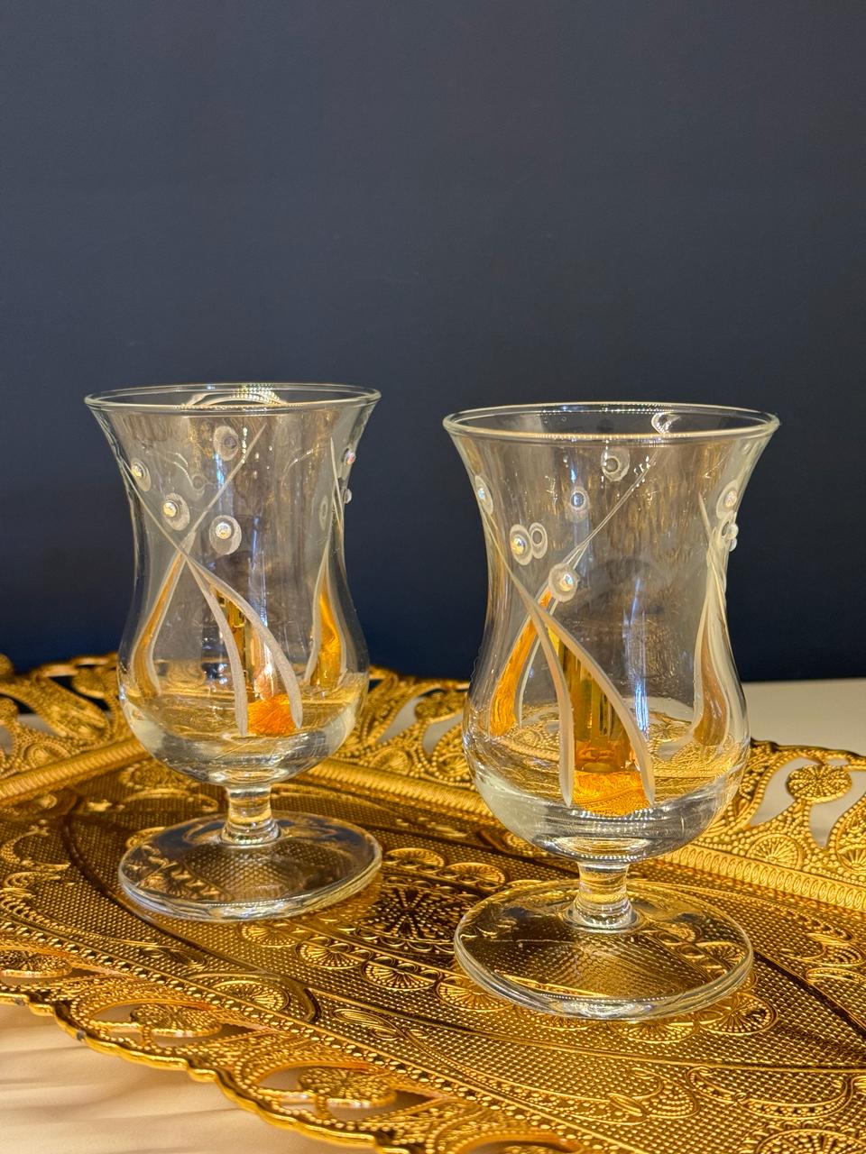 Par de Copos de Capuccino - Turco - Chanfrado - Dourado