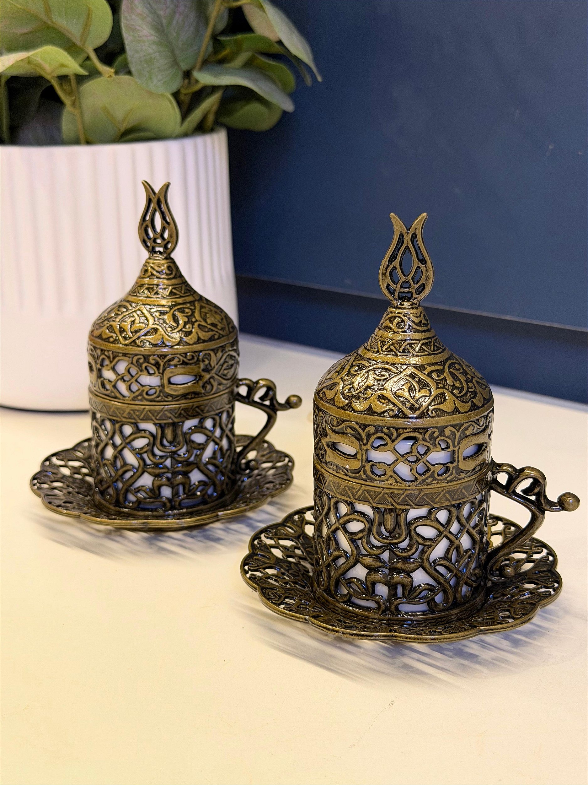 Par de Xícaras Turca - Metal - Cerâmica - Dourado Envelhecido