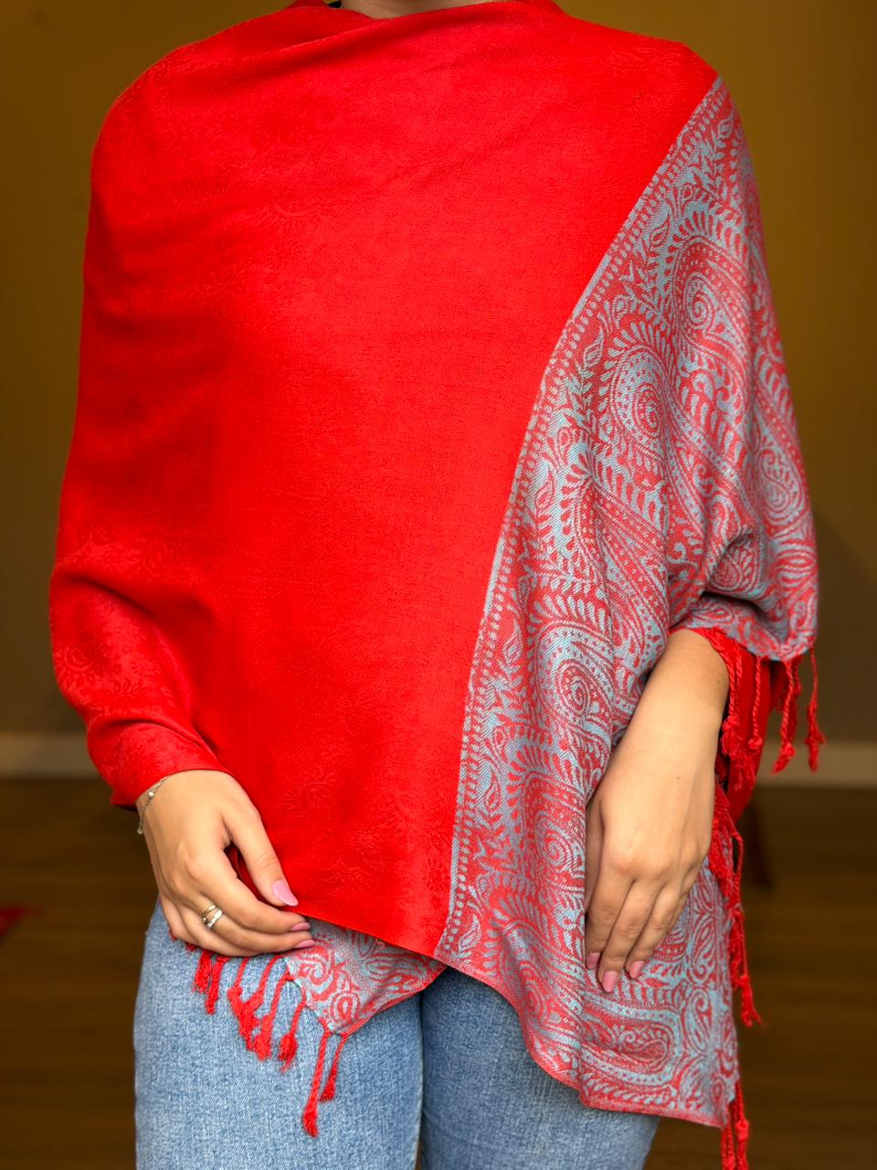 Pashmina de Viscose - Estampada - Vermelho e Azul