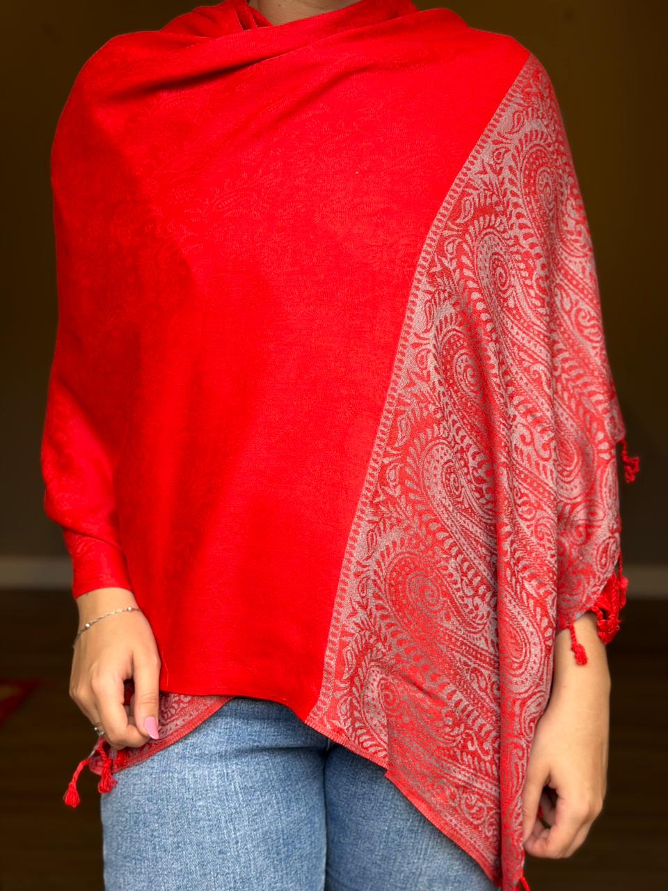 Pashmina de Viscose - Estampada - Vermelho e Cinza Claro