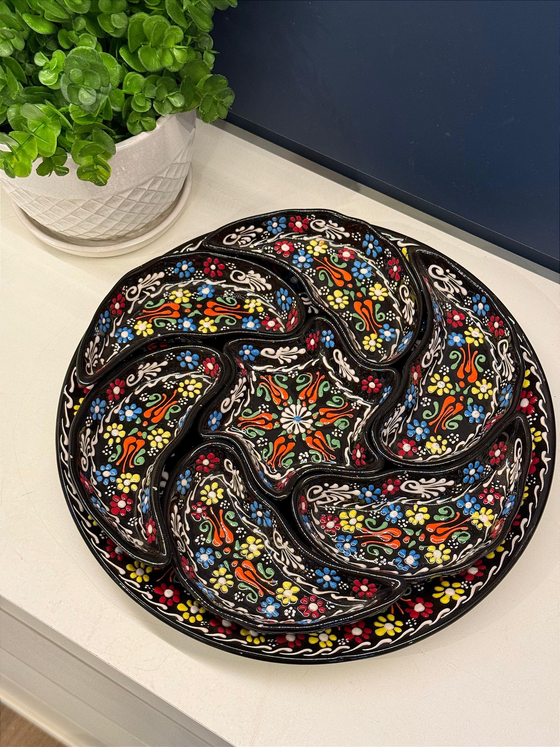 As petisqueiras de cerâmica da Marrocos For You irão adicionar alegria e elegância no momento de servir os petiscos mais deliciosos. Seja em situações rotineiras quanto em eventos com família e amigos, ela é super prática, fácil de limpar e muito bem trabalhada! A pintura a mão em relevo acrescenta um toque especial para a peça, importada da Turquia. Pode ser comprada para presentear alguma pessoa querida, ou para acrescentar aos seus itens de cozinha. O que está esperando? Aproveite nossas condições e compre já a sua!
