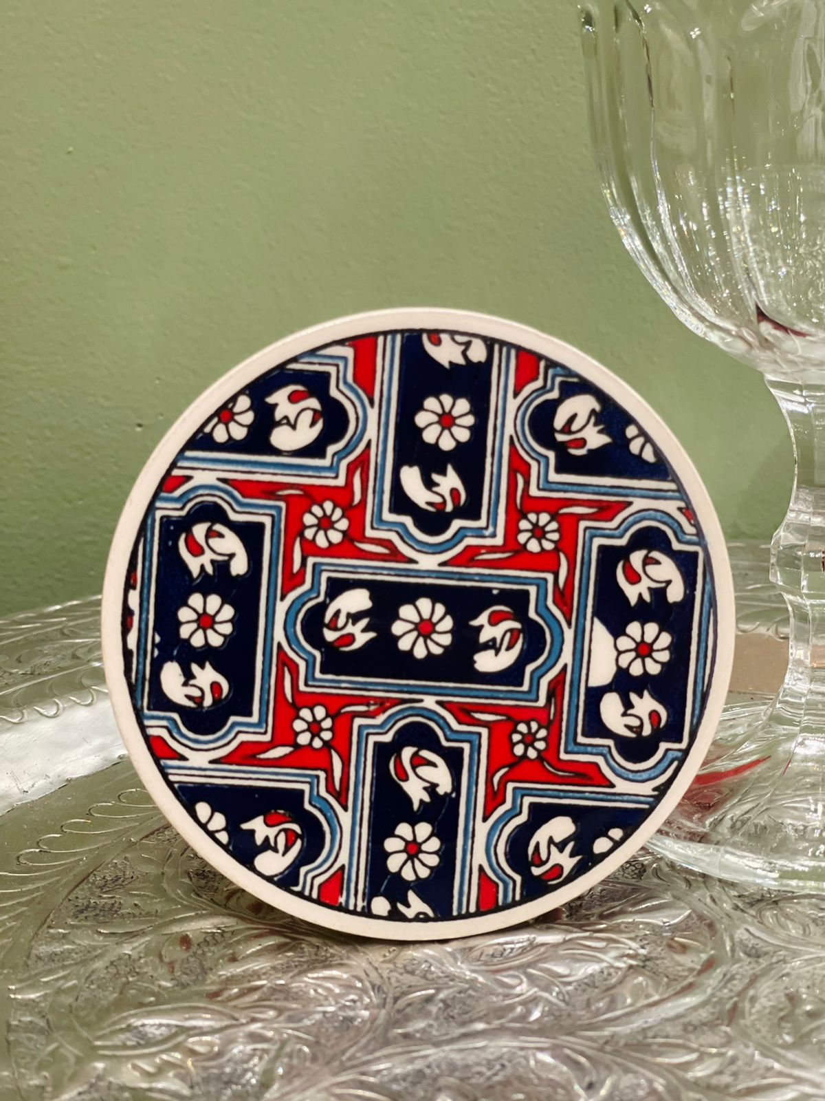 Porta Copos - Descanso Turco - Cerâmica - Azul e Vermelho