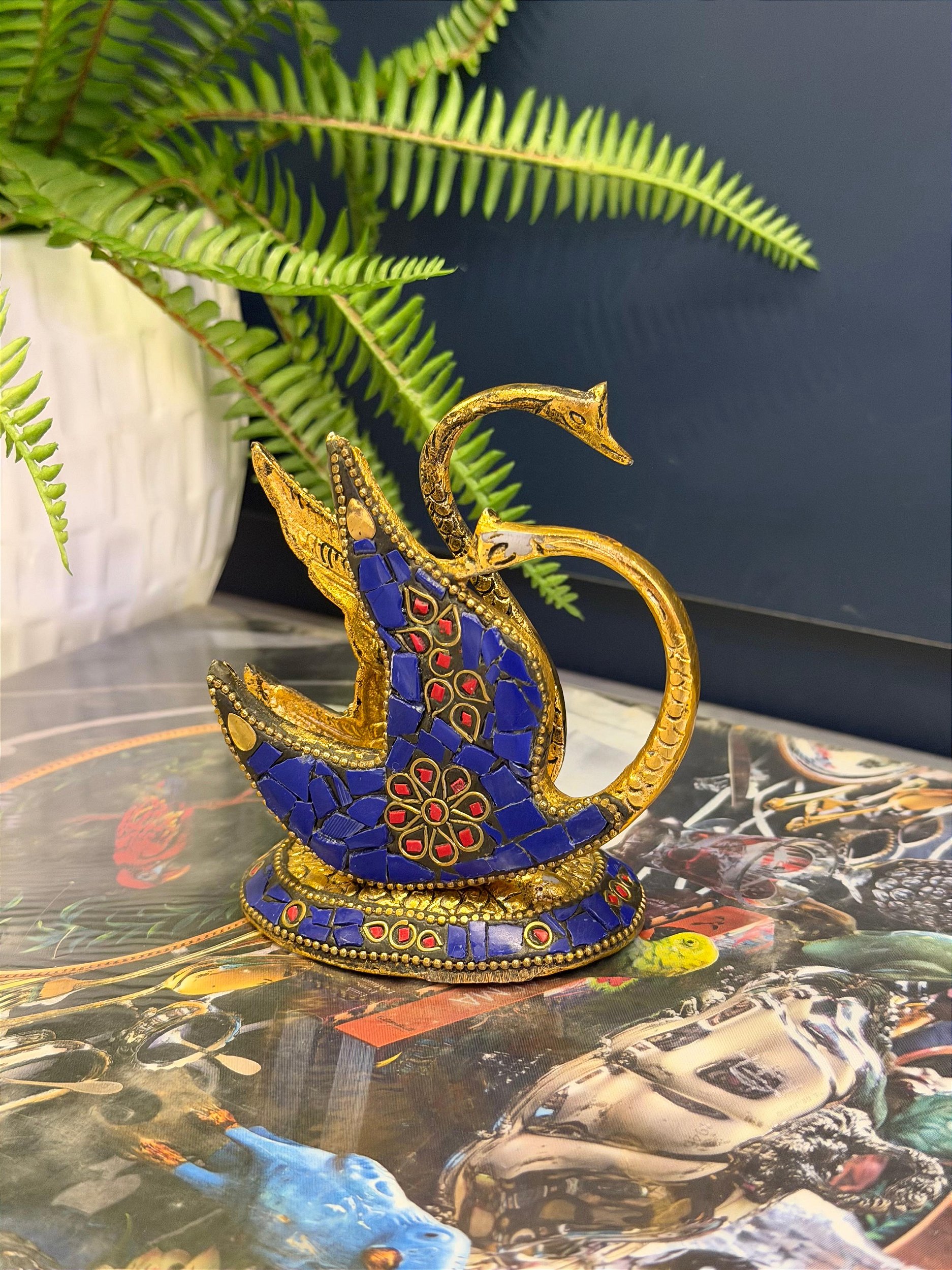 Porta Guardanapos - Metal - Azul e Dourado