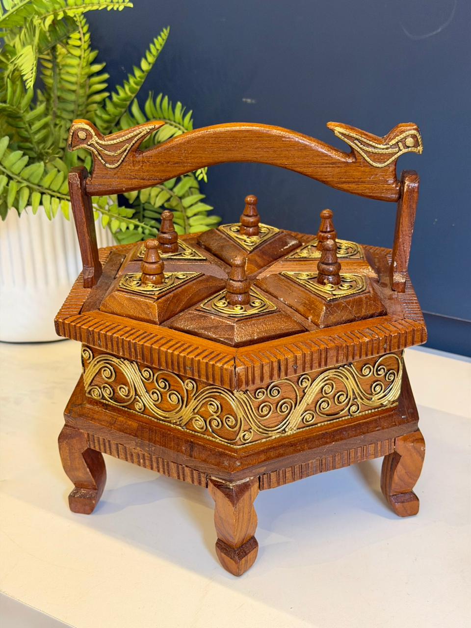 A caixa decorativa da Marrocos For You te ajudará a guardar seus itens mais preciosos. Feita de madeira e pintada a mão, é perfeita para guardar suas jóias, ou até mesmo como objeto de decoração da sala.
