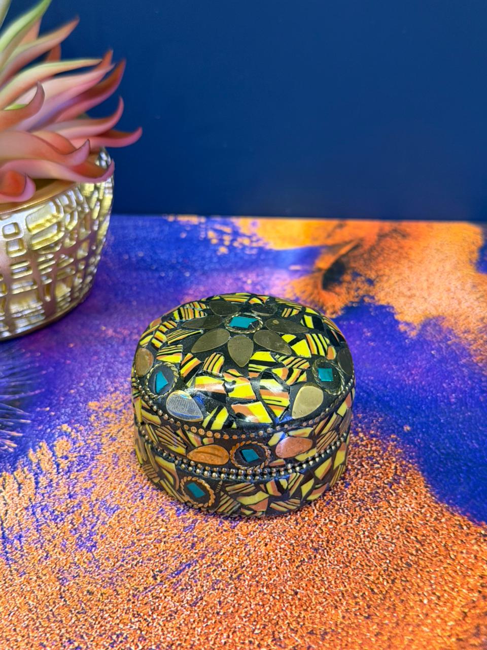Porta Joias - Metal - Feito à mão - Amarelo, Dourado e Turquesa - 5,5CM