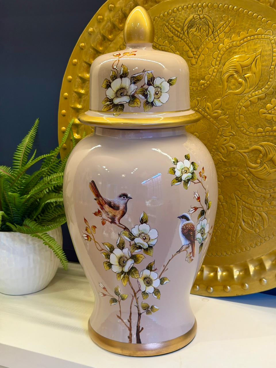 Potiche - Cerâmica - Bege - Flores - 59CM