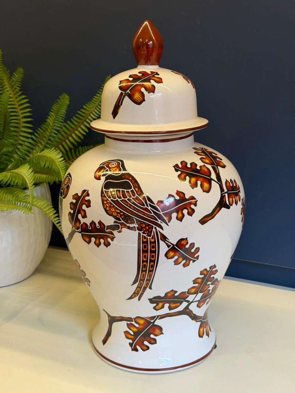 Vaso Potiche - Pássaros - Branco - Cerâmica