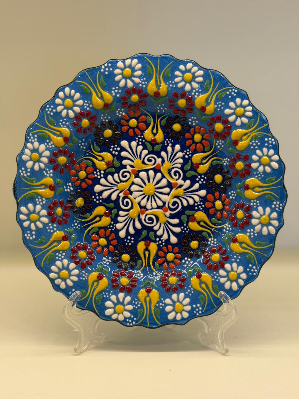 As cores vibrantes e os padrões tradicionais refletem a herança cultural turca, tornando cada prato único, pequenas variações fazem parte do charme e da autenticidade do trabalho manual. Versátil, pode ser utilizado como peça decorativa na parede ou apoiado em suportes, compondo estantes, aparadores e mesas com muito estilo.