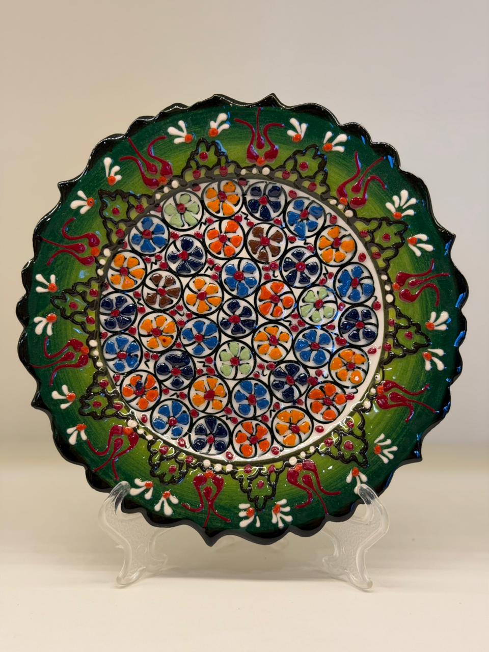 As cores vibrantes e os padrões tradicionais refletem a herança cultural turca, tornando cada prato único, pequenas variações fazem parte do charme e da autenticidade do trabalho manual. Versátil, pode ser utilizado como peça decorativa na parede ou apoiado em suportes, compondo estantes, aparadores e mesas com muito estilo.