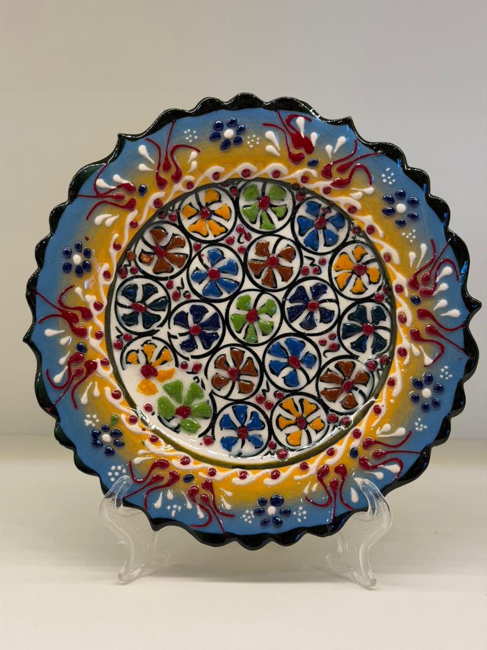 As cores vibrantes e os padrões tradicionais refletem a herança cultural turca, tornando cada prato único, pequenas variações fazem parte do charme e da autenticidade do trabalho manual. Versátil, pode ser utilizado como peça decorativa na parede ou apoiado em suportes, compondo estantes, aparadores e mesas com muito estilo.