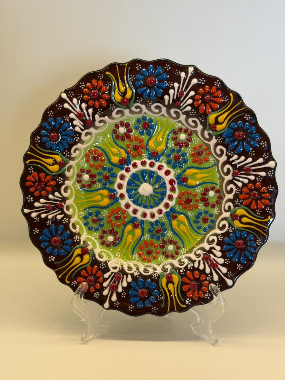 As cores vibrantes e os padrões tradicionais refletem a herança cultural turca, tornando cada prato único, pequenas variações fazem parte do charme e da autenticidade do trabalho manual. Versátil, pode ser utilizado como peça decorativa na parede ou apoiado em suportes, compondo estantes, aparadores e mesas com muito estilo.