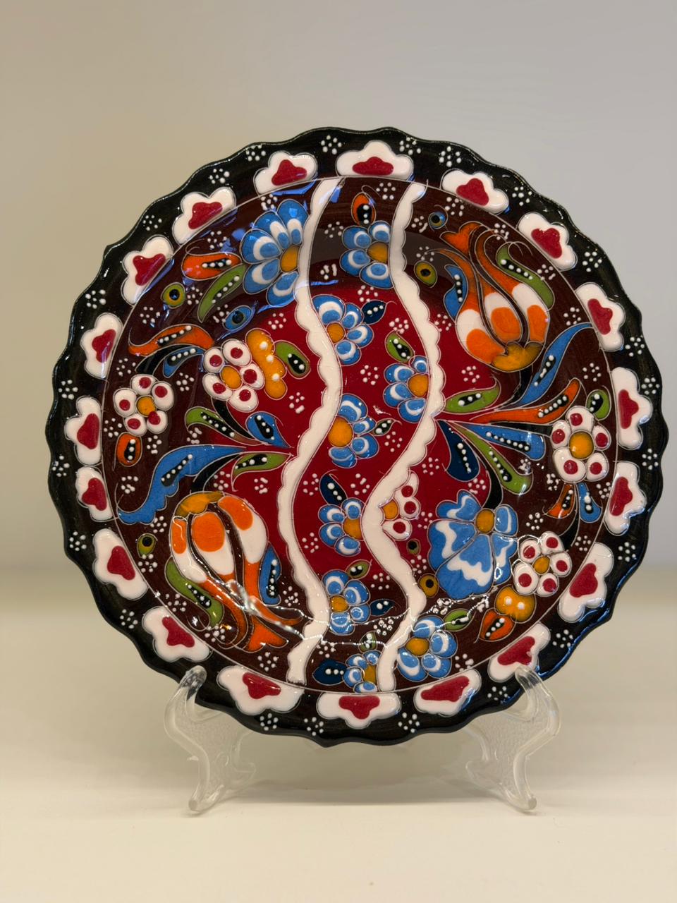 As cores vibrantes e os padrões tradicionais refletem a herança cultural turca, tornando cada prato único, pequenas variações fazem parte do charme e da autenticidade do trabalho manual. Versátil, pode ser utilizado como peça decorativa na parede ou apoiado em suportes, compondo estantes, aparadores e mesas com muito estilo.