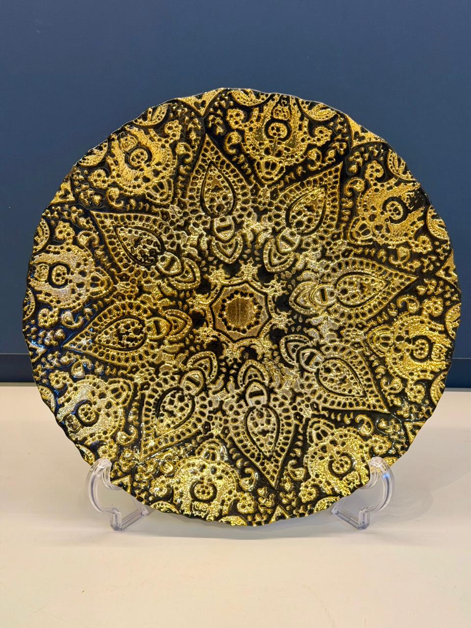Prato de Parede - Turquia - Decorativo - Vitral - Preto e Dourado