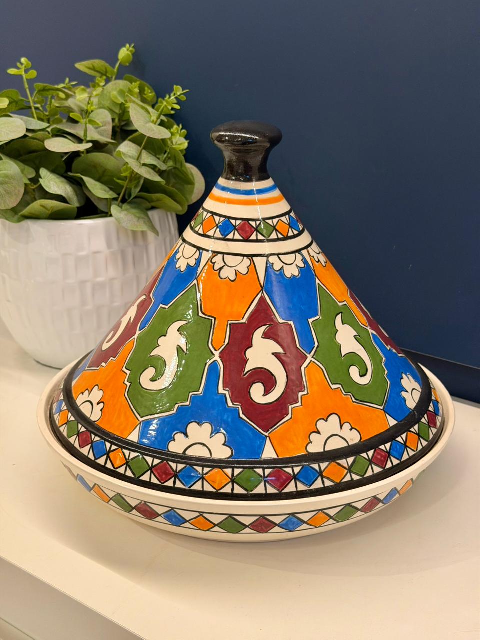 As tagines da Marrocos For You acrescentam charme e elegância a qualquer mesa de jantar. São pintados a mão e feitos de cerâmica, com um excelente acabamento.
