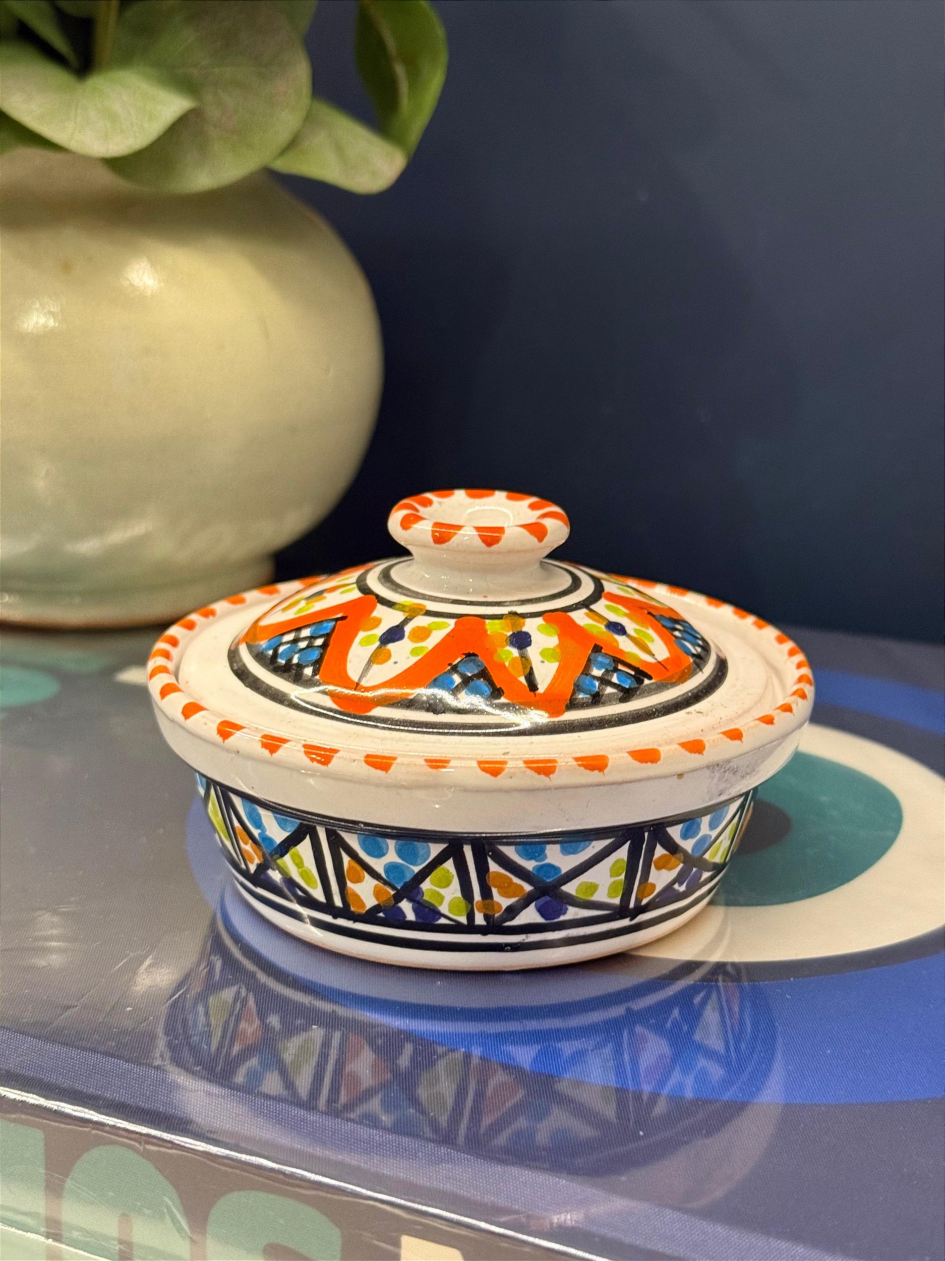 Tagine Saleiro Marroquino - Cerâmica - Pitando à mão - Laranja e Colorido