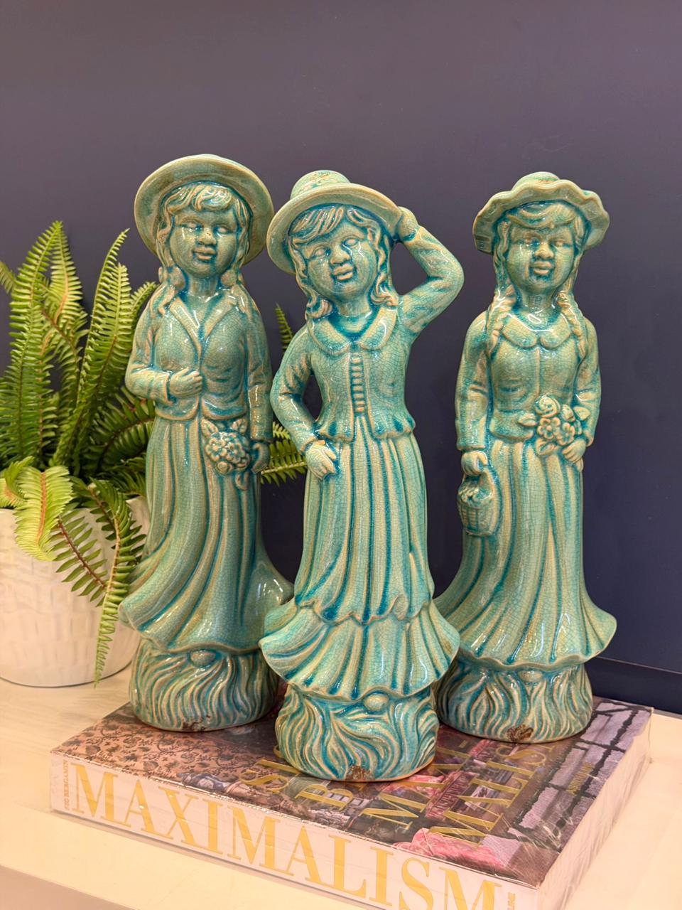Com traços sutis e vestidos esculpidos em movimento, essas peças representam a simplicidade e a beleza da vida no campo. Perfeitas para compor aparadores, prateleiras ou salas.
