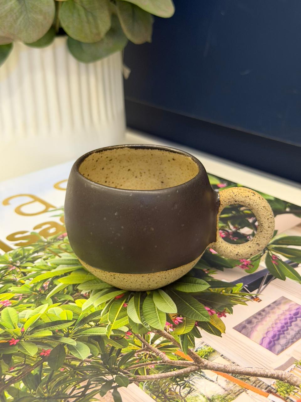 Xícara em ceramica artesanal, pintadas à mào.