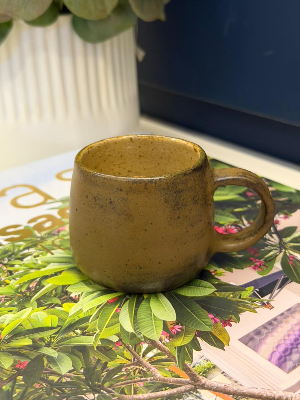 Xícara em ceramica artesanal, pintadas à mào.